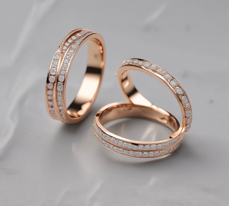 Machinecrafted gold and diamond pieces in tri colours of gold- yellow, white, rose.